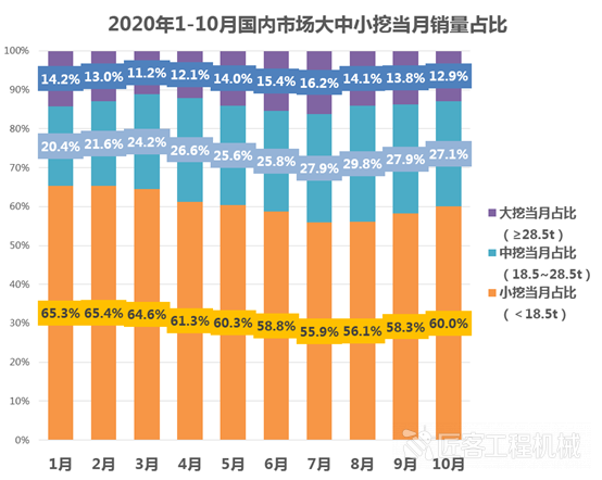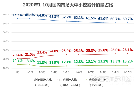 不过从累计销量的总体情况看,大中小挖的配比与1-9月相比基本一致(见下表)。
