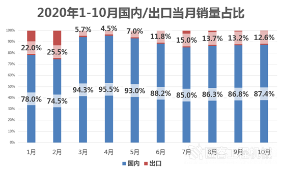 国内市场份额占比较重,前10月国内/出口市场的累计销量占比继续维持在9:1的状态,与2019年同期接近(见下表)。